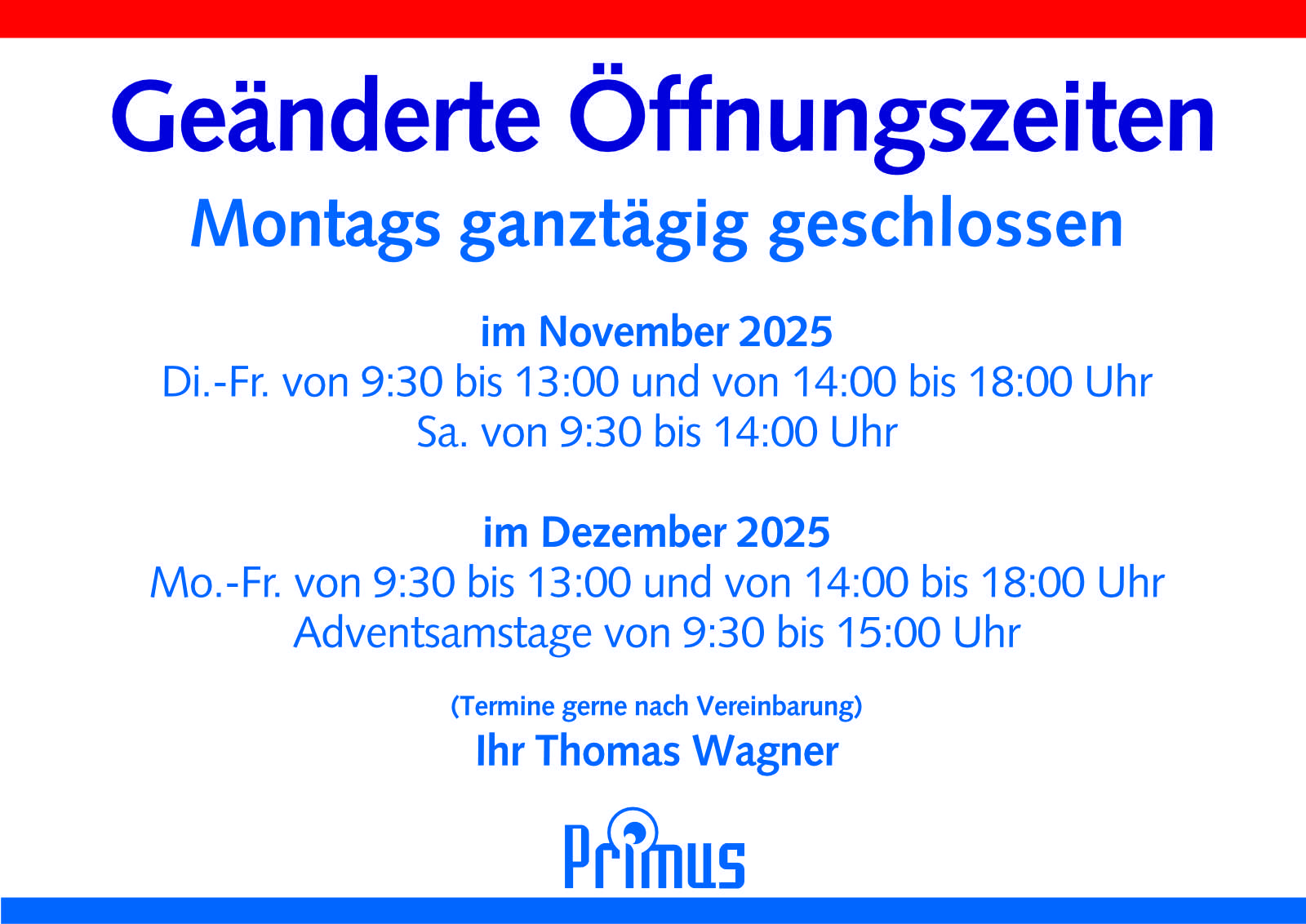 Unsere neuen Öffnungszeiten: